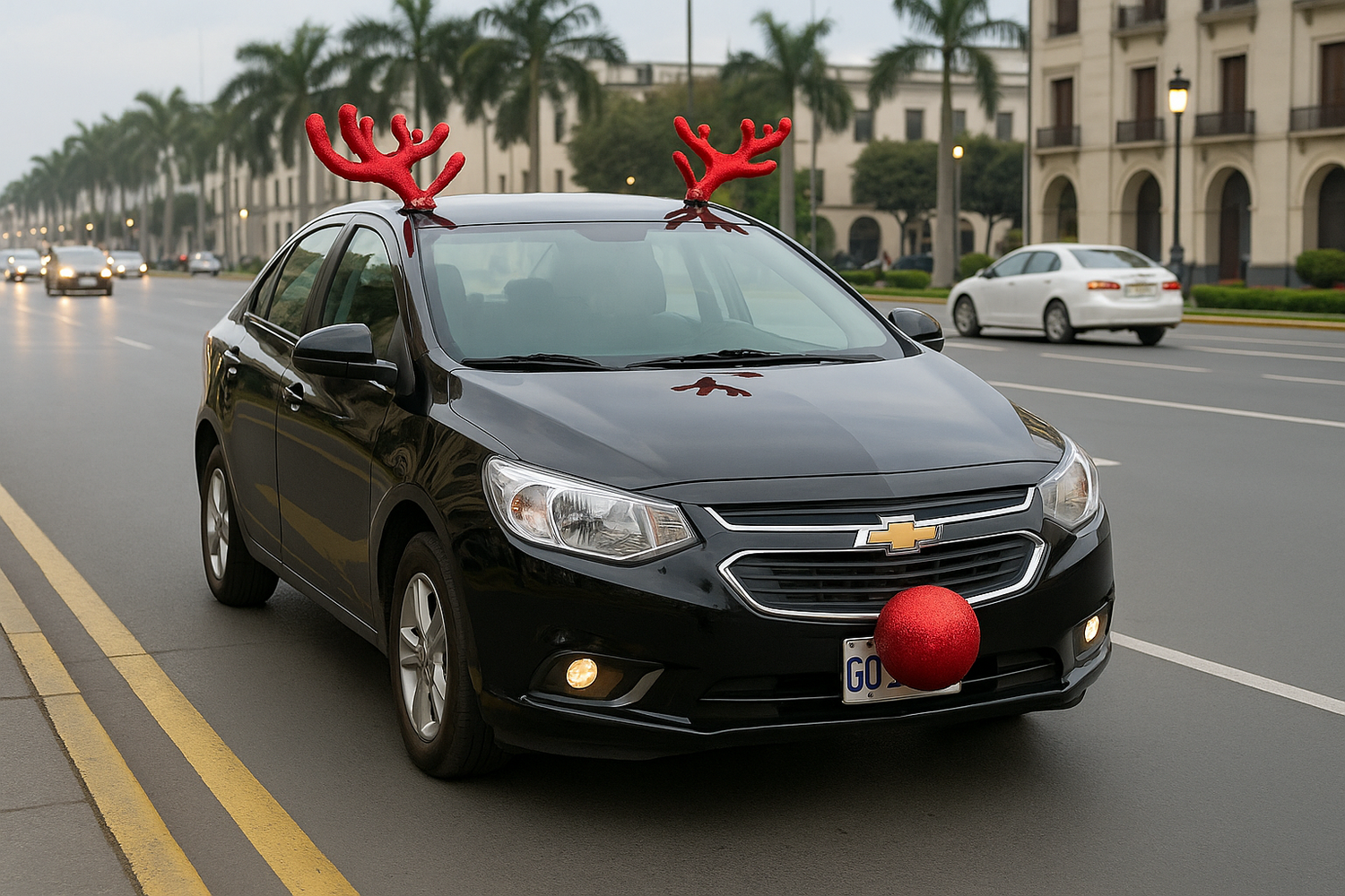 Incluye dos cuernos de felpa para las ventanas y una nariz roja que se coloca en la parte frontal del auto. 🦌🎅